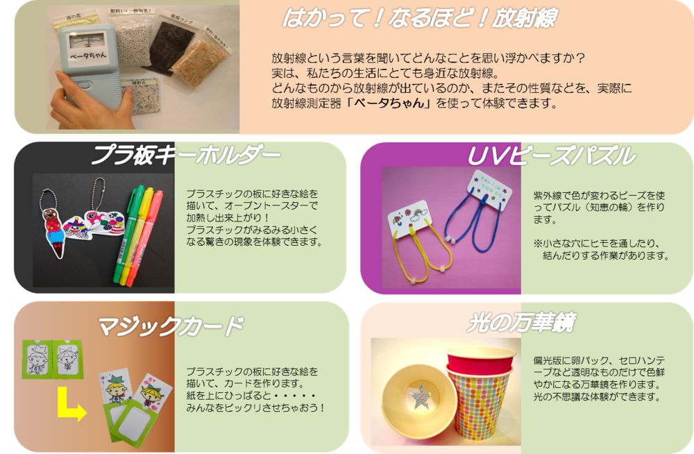 PRセンターではほかにもプラスチックの板に絵を描いて作る『プラスチックキーホルダー』や色が変わるビーズを使ってパズルを作る『UVビーズパズル』など様々な実験工作教室を行っております☆彡